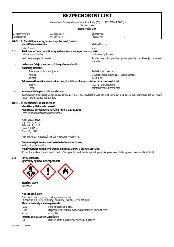 Příklad bezpečnostního listu